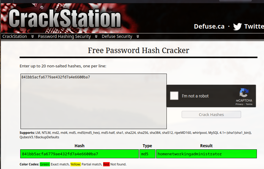 Captured hash: