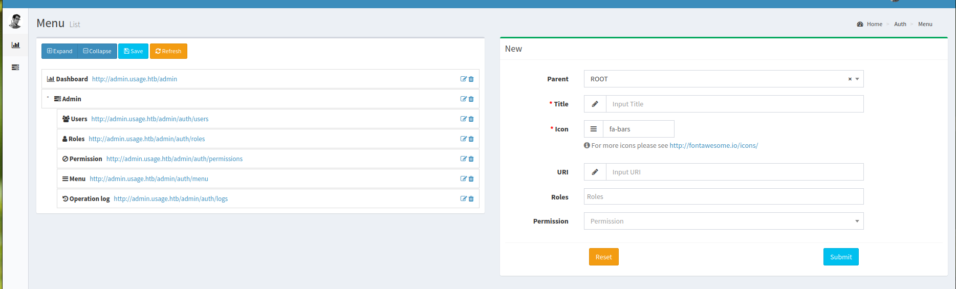 Visiting http://admin.usage.htb/ revealed a Laravel AdminLTE dashboard with a login form: